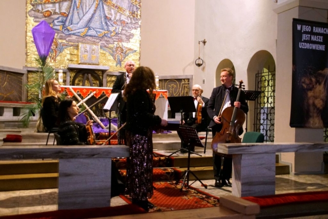 W niedzielne popołudnie, 13 kwietnia 2025 roku o godzinie 16.00, w Kościele Parafialnym pw. Wniebowzięcia Najświętszej Maryi Panny w Szczawnie-Zdroju rozbrzmiały dźwięki muzyki pasyjnej, która wprowadziła zgromadzonych w atmosferę zadumy i refleksji Wielkiego Postu. Koncert odbył się pod patronatem Ks. Proboszcza Tomasza Zięby, Burmistrza Miasta Pana Marka Ćmikiewicza oraz Dyrektora Teatru Zdrojowego, którzy wspólnie zaprosili mieszkańców do przeżycia tego niezwykłego wydarzenia muzycznego.