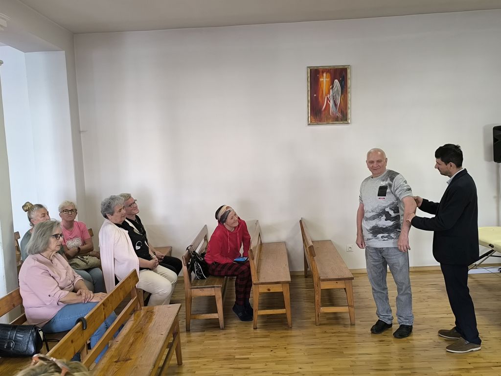 W kilku przypadkach udało się przynieść ulgę w bólu już podczas trwania spotkania, co spotkało się z dużym uznaniem i wdzięcznością obecnych. Dodatkową atrakcją była niespodzianka – nagroda, którą w drodze losowania otrzymał uczestnik z cegiełką o numerze 15, wspierający potrzeby parafii.