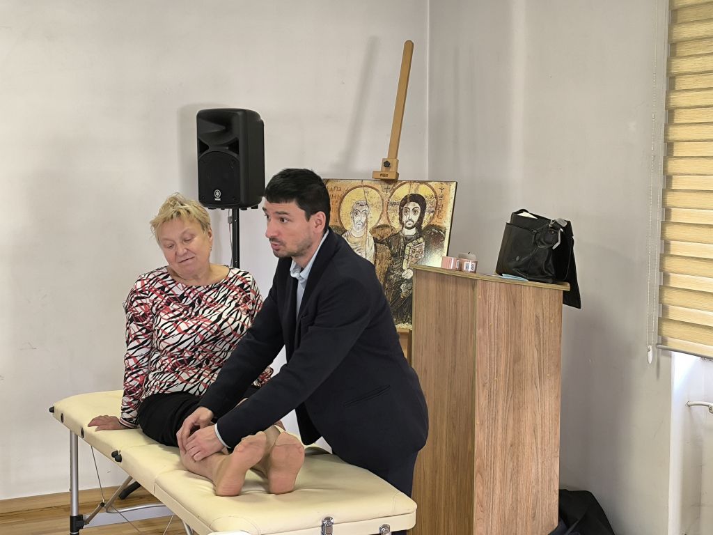 Pan Krzysztof w przystępny sposób przybliżył uczestnikom temat terapeutycznego, holistycznego podejścia do problemu bólu. Omówione zostały m.in. pinoterapia – jako jedna z metod narzędziowych wykorzystywanych w fizjoterapii – oraz technika kinesiotapingu. Uczestnicy spotkania mieli możliwość zadawania pytań, a także skorzystania z indywidualnych konsultacji oraz zabiegów.