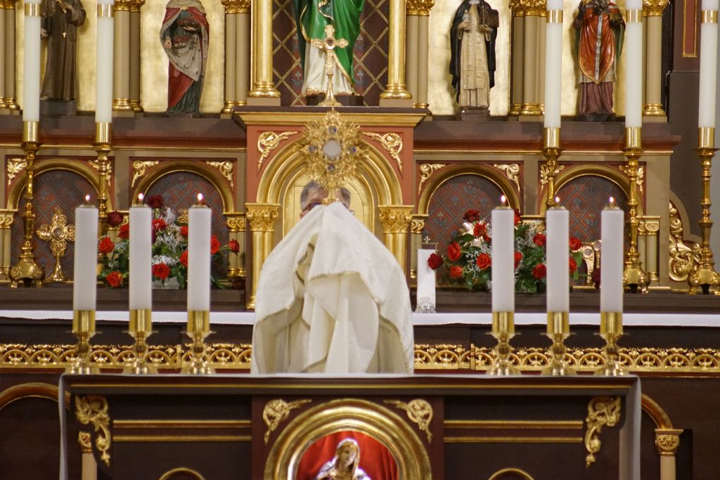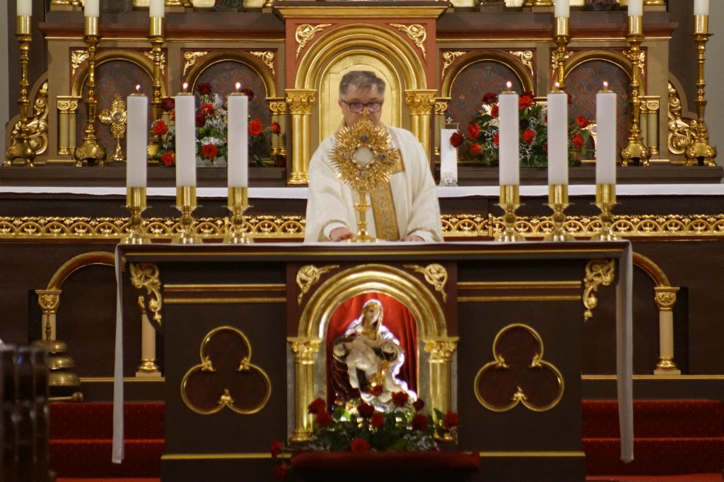 Nabożeństwo rozpoczęło się od Mszy Świętej, a potem nastąpiło uroczyste wystawienie Najświętszego Sakramentu. Ksiądz Proboszcz dr Zbigniew Chromy z wielkim zaangażowaniem i sercem poprowadził całe nabożeństwo w sposób bardzo uroczysty i poruszający. Obecni wierni w skupieniu trwali na adoracji, powierzając Bożemu Miłosierdziu siebie, swoje rodziny i parafie, naszą Ojczyznę i Świat.