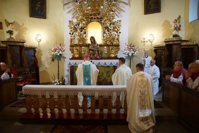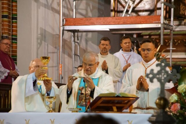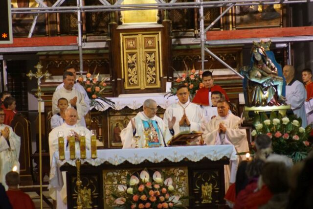 Wałbrzych, 15 września 2025 r. – W poniedziałek wierni z całego miasta i okolic zgromadzili się w Kolegiacie pw. Matki Bożej Bolesnej i Świętych Aniołów Stróżów na uroczystej Mszy Świętej odpustowej ku czci Matki Bożej Bolesnej, której przewodniczył biskup świdnicki Marek Mendyk.