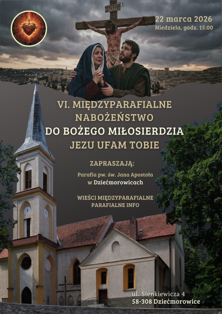 Redakcja Wieści Międzyparafialnych – Parafialne Info wraz z Parafią pw. św. Jana Apostoła w Dziećmorowicach k. Wałbrzycha serdecznie zapraszają do wspólnej modlitwy podczas VI. Międzyparafialnego Nabożeństwa do Bożego Miłosierdzia pod hasłem: „Jezu ufam Tobie”